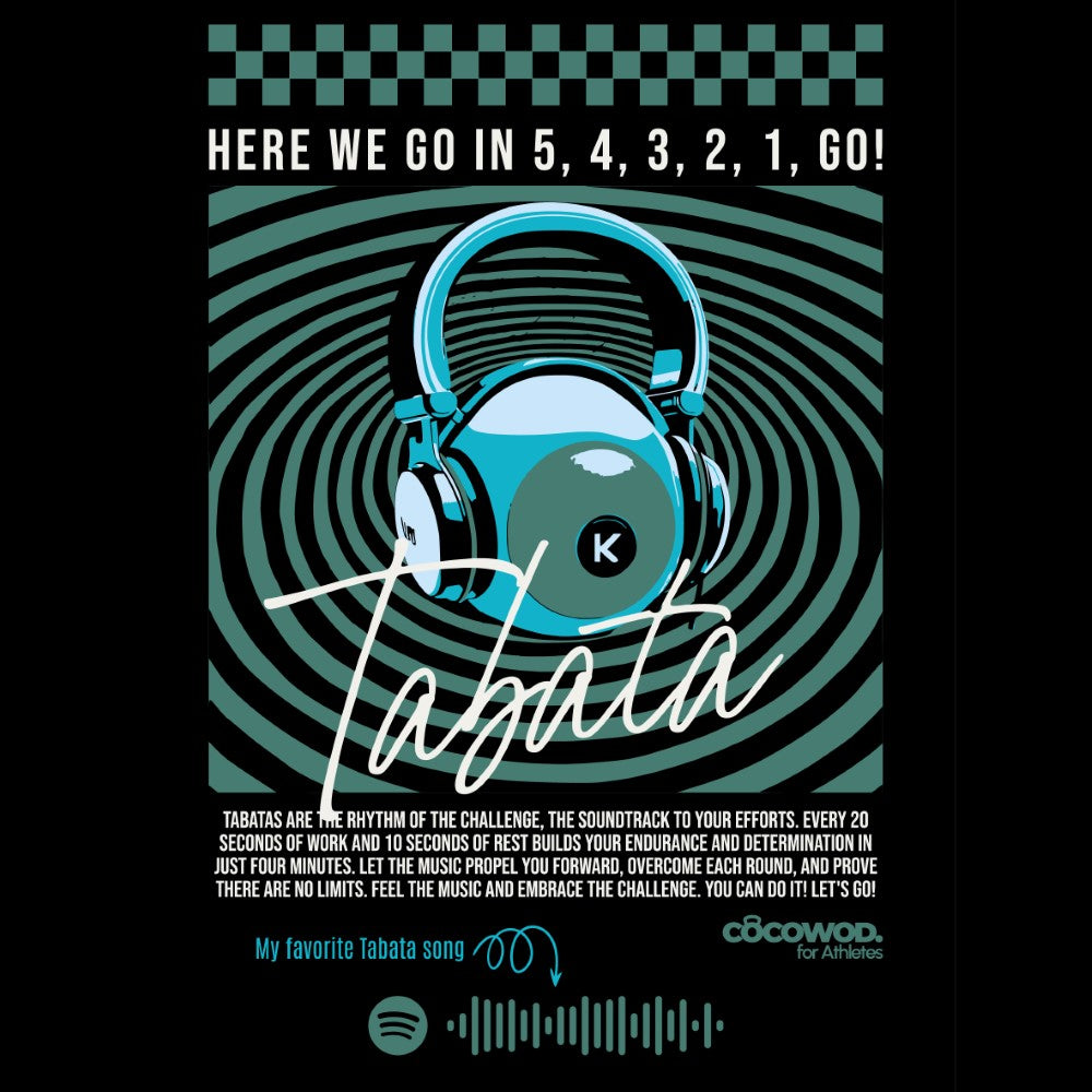 Pick your favorite from the five all-time classics and we’ll place its Spotify code on the tee. Want a different one? Customize it with your go-to Tabata for just a little extra