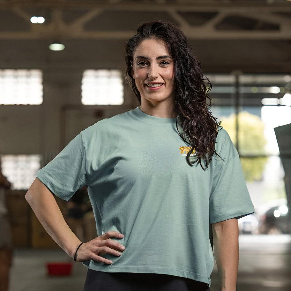 Dieses Crop-T-Shirt hat alles: es ist bequem, leicht und hat einen entspannten Schnitt, der immer gut aussieht. Es wurde für Frauen entwickelt, die beim Cross-Training alles geben. Mit einem lockeren Schnitt, der dir volle Bewegungsfreiheit gibt, und mit lässig fallenden Ärmel, die nicht nur stylisch sind, sondern auch bei Pull-Ups nicht stören.